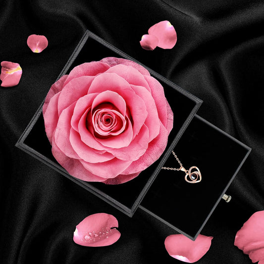 Preserved Red Real Rose with Love You Necklace in 100 Languages Gift Set, Enchanted Real Rose Flower for Valentine'S Day Anniversary Wedding Bthday Romantic Gifts for Her (F Pink Rose)